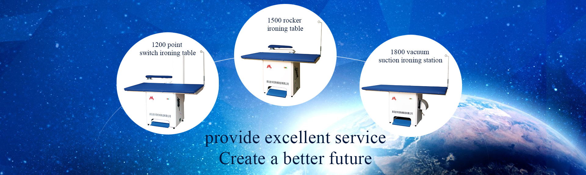 Qingdao Jinhuamao Machinery Manufacturing Co., Ltd. (Qingdao Huamao Garment Machinery Factory) mainly produces vacuum suction ironing table, jog switch ironing table, rocker ironing table, bonding machine, suction head machine, electric heating steam generator and other clothing. mechanical.